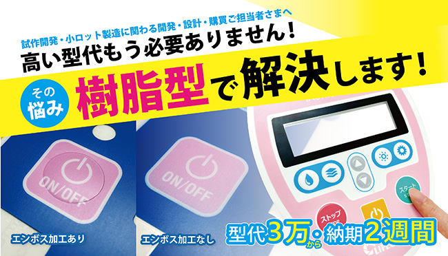 B-45 | プリントス(株) | 樹脂型で小ロットエンボス加工!型代3万~納期2週間 | 愛知県 | ・樹脂型で小ロット専用エンボス加工 ・機械部品の曲面に機能印刷 ・印刷×加工を社内一貫生産で工業銘板を製作樹脂型で小ロットエンボス加工!型代3万~納期2週間「高額な型代でエンボス加工を諦めていませんか?」小ロットの常識を覆す『樹脂エンボス型』が誕生! 「小ロットだから」と、コストを理由にエンボス加工を断念していませんか? そんな”もったいない”をなくしたい一心で、創業49年の技術を結集。品質はそのままに、コストダウンを実現した『樹脂エンボス型』を開発しました。 ■圧倒的低コスト!《型代3万円~》■驚きの短納期!《納期2週間~》 ■安心の高品質!《創業49年の技術力》 多品種・小ロットの試作開発にぜひご活用ください!営業グループ愛知県一宮市佐千原垣崎61 |