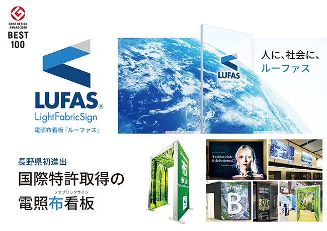 D-10 | (株)杏花印刷 × 東日印刷(株) | ファブリックサイン「ルーファス」のご案内 | 長野市 | 杏花印刷は1970年に長野市で創業し、50年を越えて総合印刷業を営んでまいりました。現在では長野県内だけでなく、全国のお客様に印刷サービスをご提供しております。「印刷」を見つめて50年以上。あらゆる視点からお客様のニーズを見極め、ご提案をさせていただきます。また、自社ブランドであるスポーツ情報誌「Nsports」の出版事業や、それに関連する学校・学生等を対象とした各種企画運営、電照布看板「LUFAS」の代理店事業など、印刷のノウハウを活かした様々な事業を展開し、時代に合わせた価値を創出します。ファブリックサイン「ルーファス」のご案内次世代の電照布看板「LUFAS(ルーファス)」を展示。 今回はメーカーである東日印刷(株)との共同出展をいたします。 組立て簡単、軽くてシンプルなアルミフレームに高精細プリントの専用ファブリック(布)をはめ込むだけで完成。独自開発・国際特許取得の構造と、高品質LEDが美しくビジュアルを際立たせます。ファブリックは100%ペットボトルリサイクル素材かつ防炎加工のため、環境に優しく災害発生時等も安全。コストパフォーマンスにも優れた新時代のビジュアル・コミュニケーションツールをぜひご覧ください。【杏花印刷】長野県長野市大字穂保字夫婦池436-12 【東日印刷】東京都江東区越中島2-1-30 |