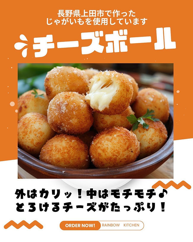 手作りフライドポテトとチーズボールを提供しています。