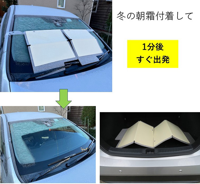 「ニックカーウインドウガード」は、今までにない新しい自動車用霜除けカバーで、取付けが簡単!1分程度で装着,脱着でき、暖機運転が必要なく、使用後シートの表面は霜で濡れていますが、 自動車の中あるいは玄関先に置いて(コンパクト収納)半日程度で乾き、毎日使用できて、ガソリン代と時間を節約できます。また、春夏秋は、外付けの自動車用サンシェードとして使用でき、 外付けで太陽光を遮る効果が抜群です。 耐久性があるので、オールシーズン・何年も使用でき、ワッペンを貼って好みのデザインに変えられます。