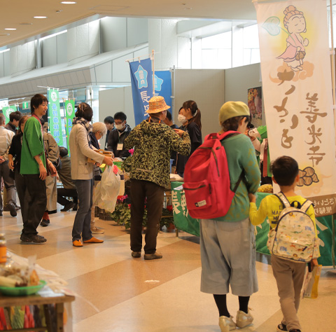 旬の野菜や果物、加工品の販売、農産物の詰め放題、子どもが楽しめる様々なものづくり体験・ゲーム企画、お買い物大抽選会などを開催します。